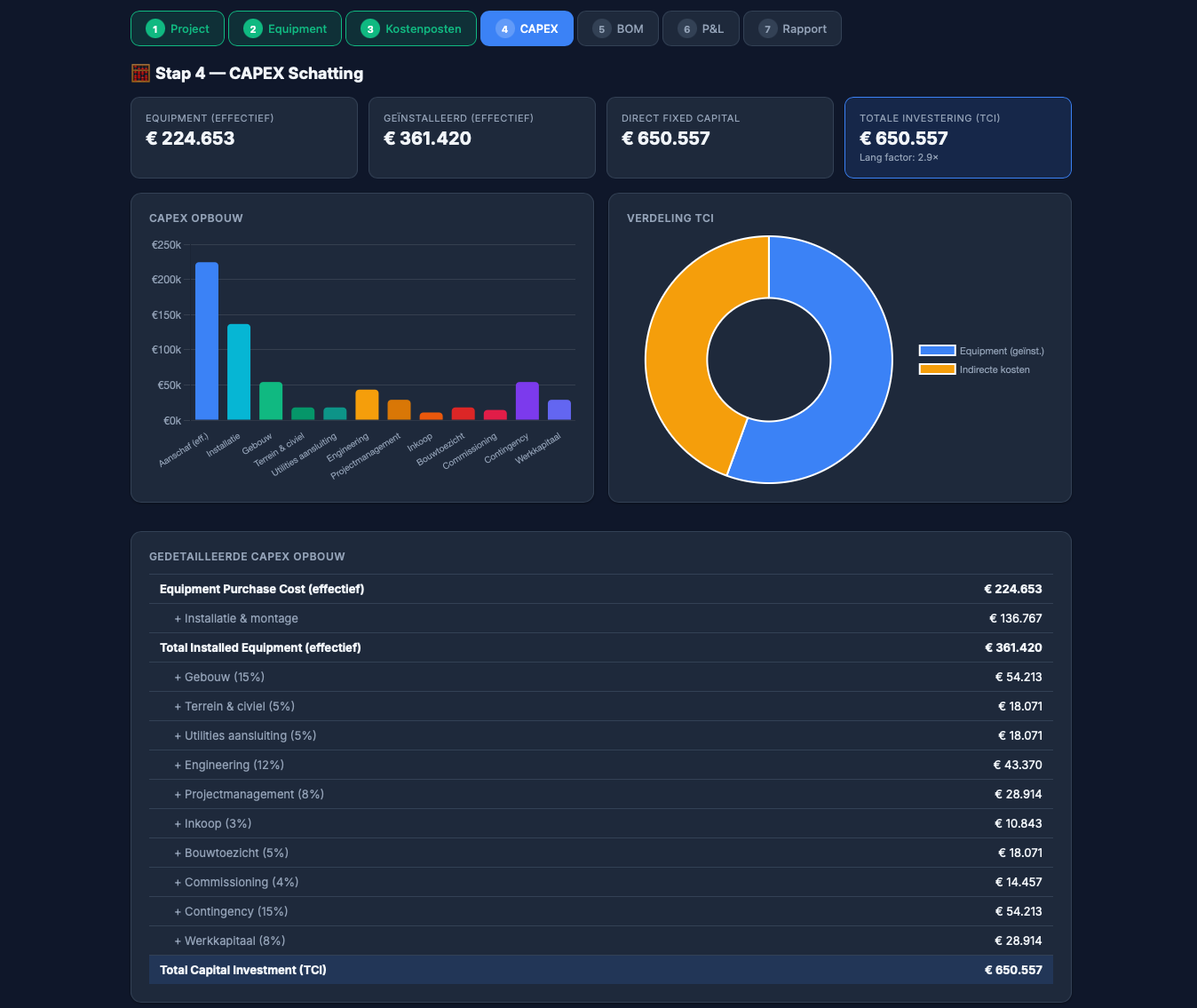 CostBite connects engineering design directly to financial performance. By importing a validated process model from FlowBite, users can instantly translate technical configurations into structured CAPEX calculations. Equipment sizing, utilities, and process parameters are converted into transparent investment estimates, providing a solid financial foundation for project evaluation.